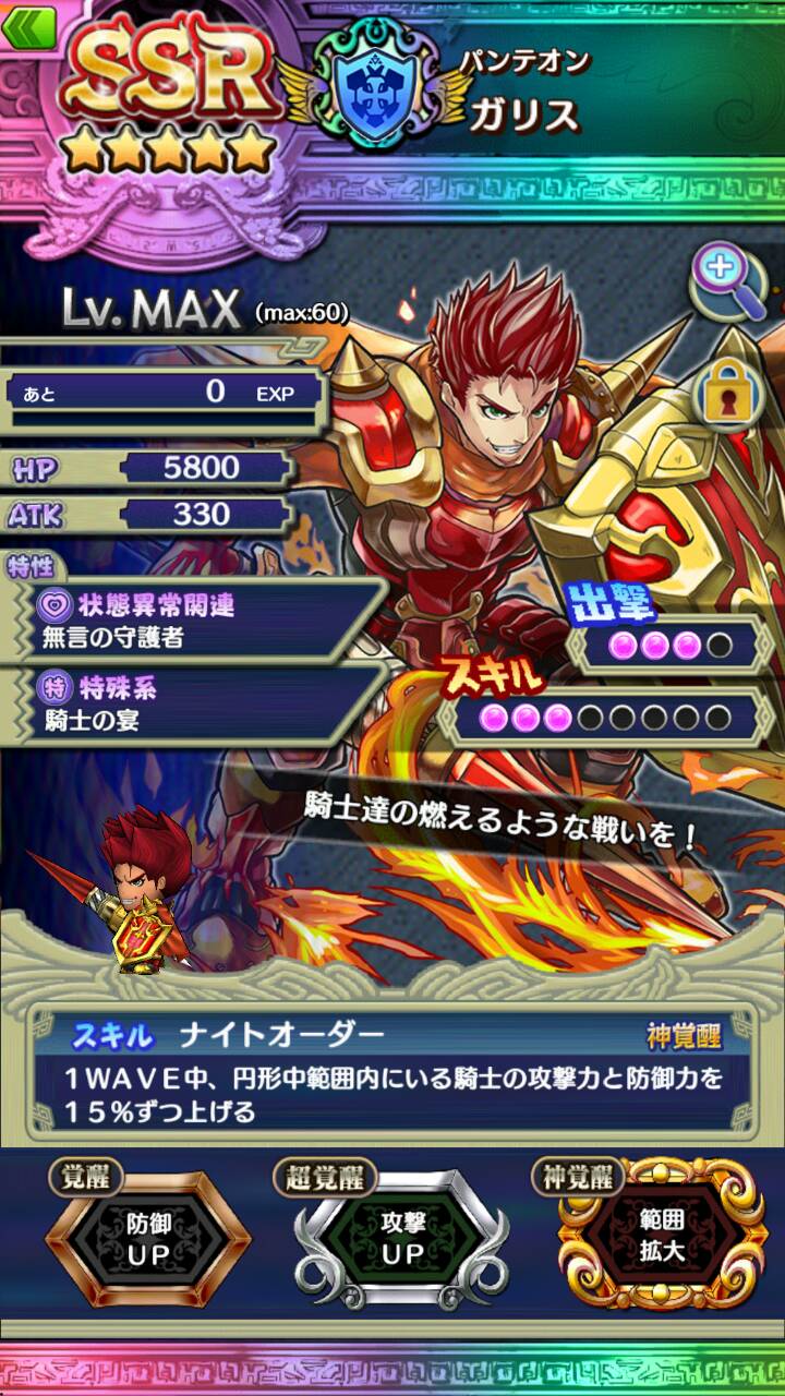 1WAVE中、円形中範囲内にいる騎士の攻撃力と防御力を15%あげることができる。