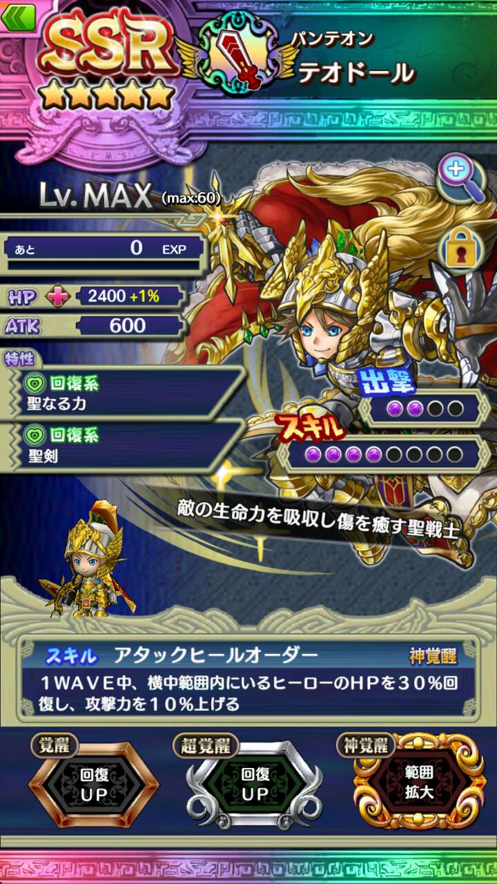 SSRまで進化すれば、更に与えたダメージの5%を吸収する第2特性[聖剣]が増える。
