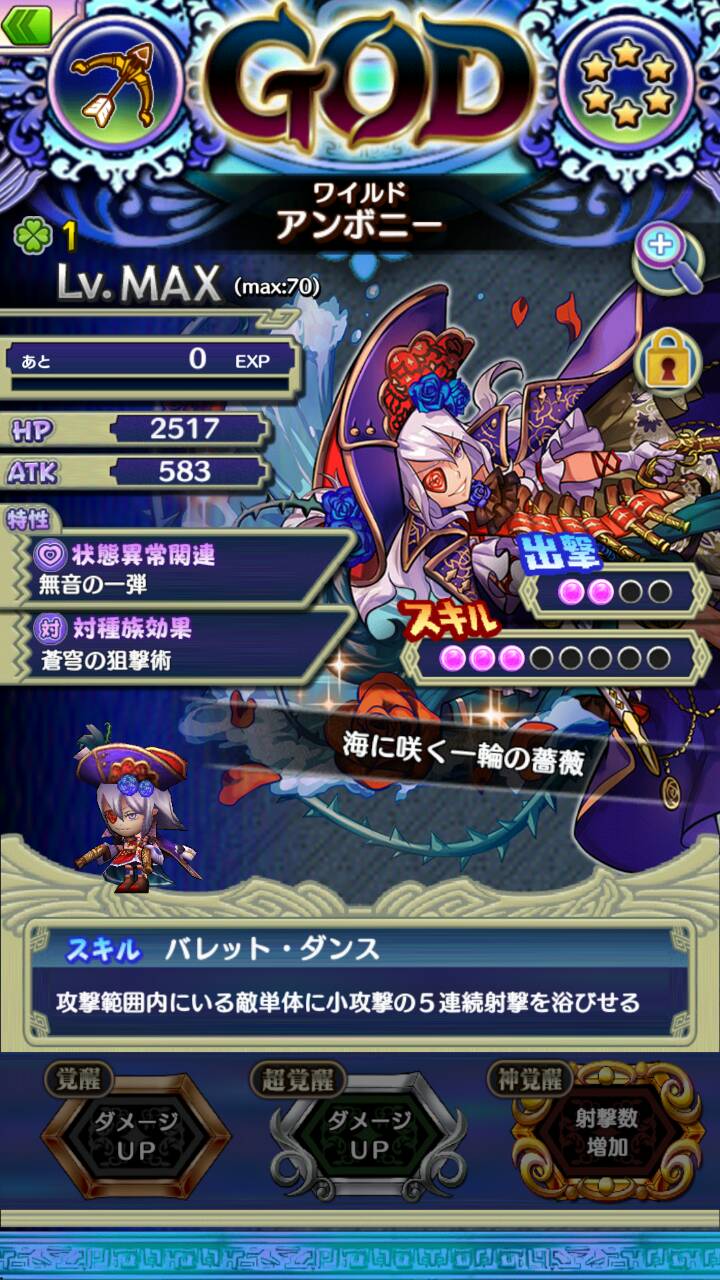 第2特性[蒼穹の狙撃術]で飛行魔族に対して攻撃力が25%あがる。