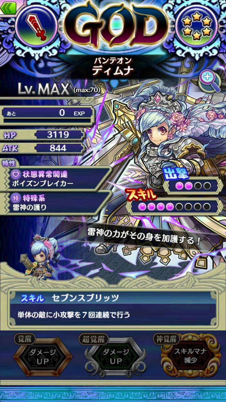 第2特性[雷神の護り]は、HPが20%以上ある状態で即死攻撃を受けたら、HPを1残す。