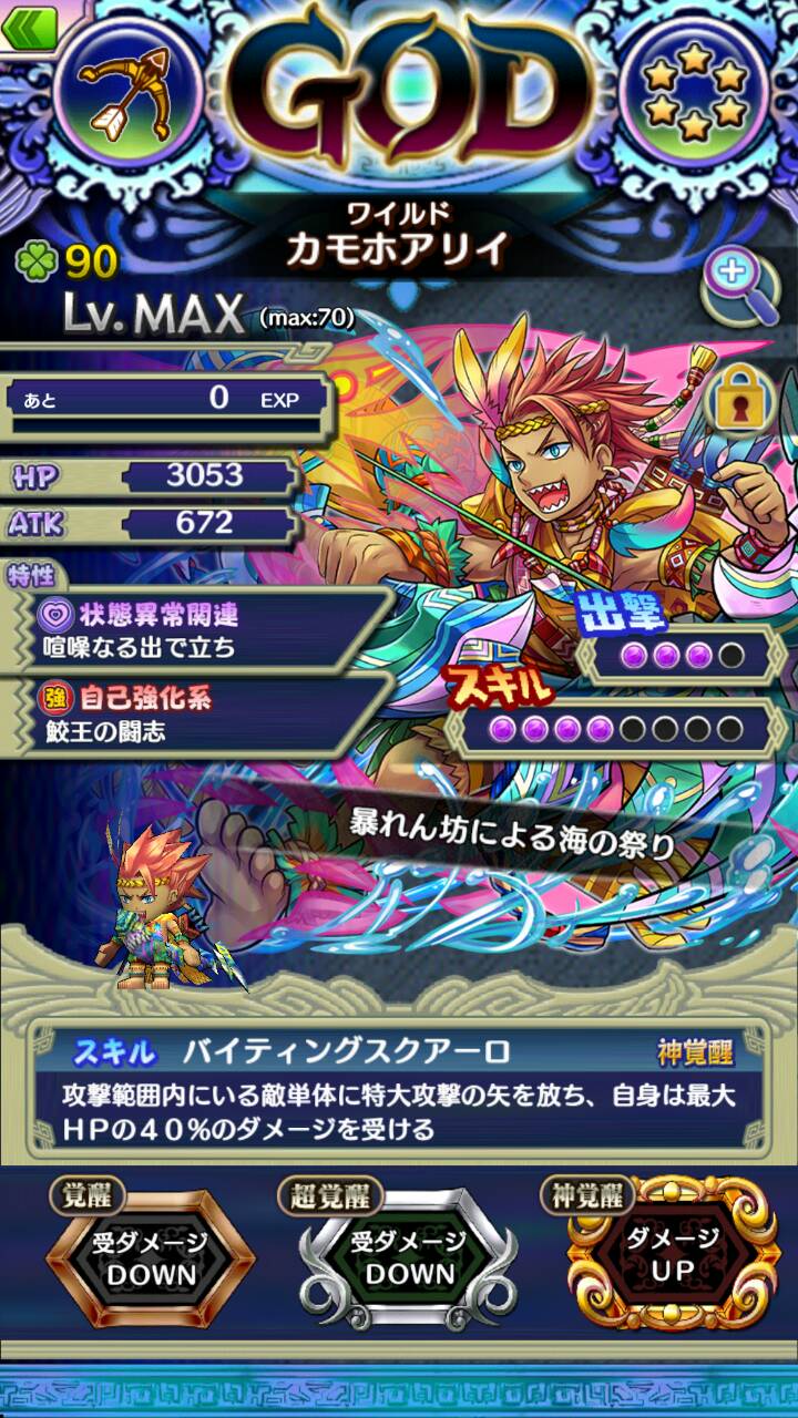 第2特性[鮫王の闘志]により、HPが75%以下の場合、攻撃力が20%あがる。