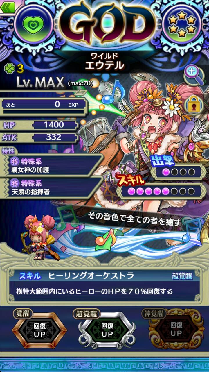 特性[戦女神の加護]で全ヒーローの攻撃力を5%あげる。