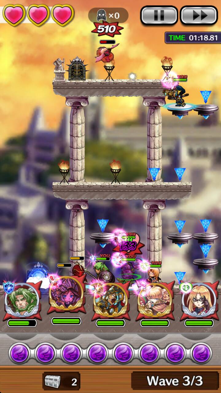 2WAVEと同じく、敵は下段左側と上段左側の2箇所から出現。