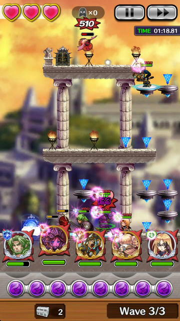 2WAVEと同じく、敵は下段左側と上段左側の2箇所から出現。